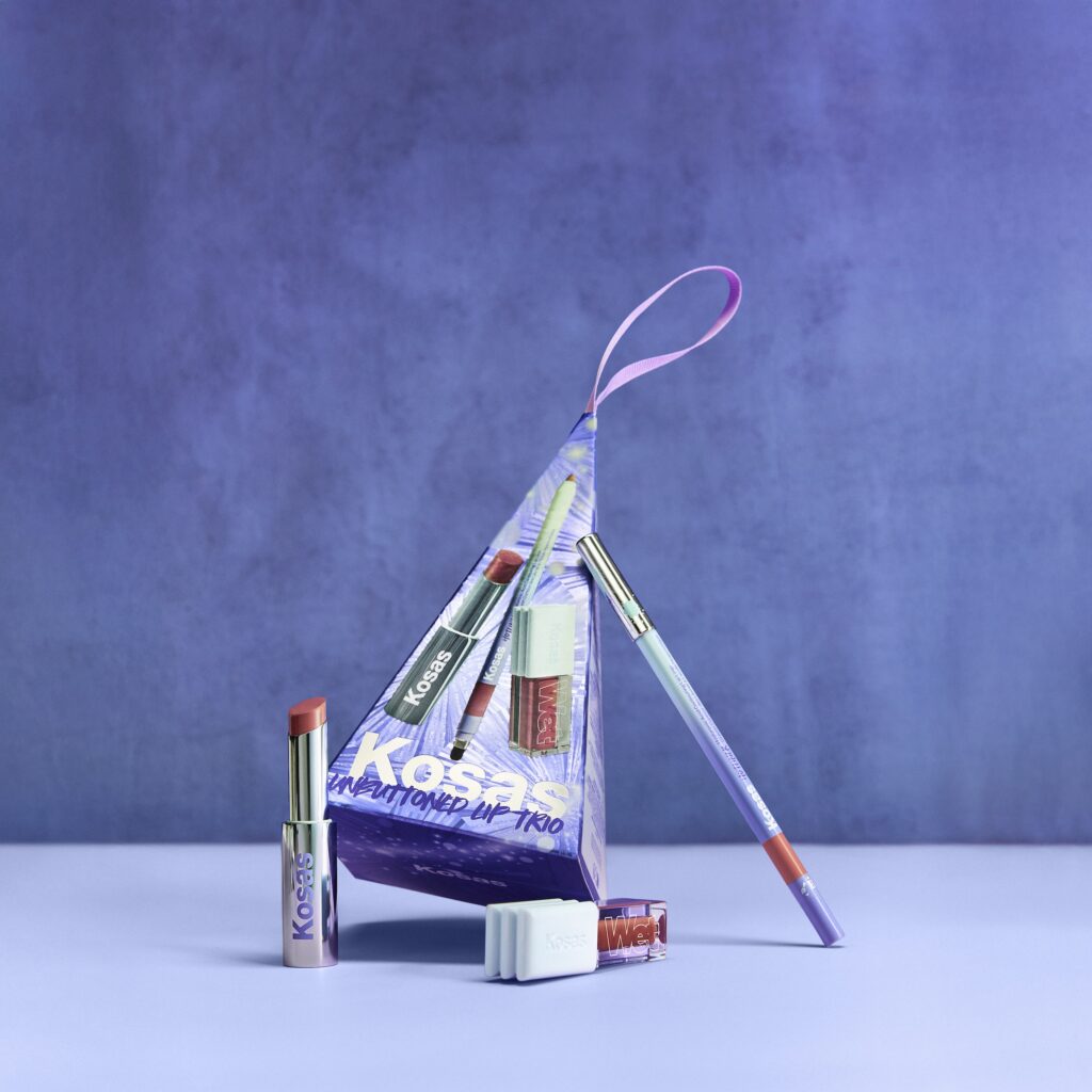 Kosas keeps things clean, wearable, and quietly luxurious with its holiday trios. The Unbuttoned Trio delivers a full lip look that enhances rather than masks, while the Blush Is Life Trio introduces new tones alongside a cult favorite. These sets are easy to integrate into everyday routines, which makes them especially appealing during a season when makeup often leans overly dramatic.