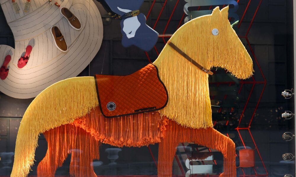 HERMÈS UNVEILS INSPIRING FAUBOURG WINDOWS BY JOE AND AMANDA BOU ABBOUD AT THE PLACE VENDÔME QATAR.