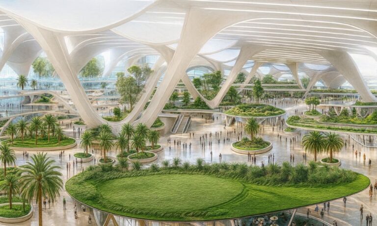 Running from 15 November 2025 to 4 January 2026, the installation stands at the centre of a wider citywide programme shaped by artistic director Khai Hori. The second edition of Manar Abu Dhabi spreads twenty-three works across four locations and takes its name from the Arabic word for guiding light. Jubail Island anchors the exhibition with fifteen works, including new pieces by Emirati sculptor Shaikha Al Mazrou and a striking dome structure by Dutch duo DRIFT. For the first time, the initiative also extends into Al Ain. Eight installations unfold through the Al Qattara andAl Jimi oasis trails, merging heritage landscapes with contemporary experimentation from regional and international artists such as Maitha Hamdan, Ammar Al Attar, and Hamburg-based Christian Brinkmann. Brinkmann’s interactive Floral Resonance uses sensors to respond to touch and proximity, allowing the visuals and soundscape to shift in real time. It is a poetic choice for an exhibition rooted in light, geography and the movement of people.