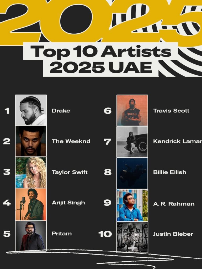 Drake claims the UAE’s top spot, proving once again that the country loves a lyric-heavy, mood-driven soundtrack paired with a good bass line.