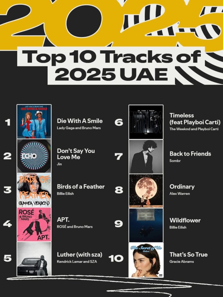 Spotify Wrapped has become one of the most anticipated cultural check-ins of the year, not because it tells us anything shocking, but because it confirms what dominated our playlists and shaped our daily rhythms. The 2025 edition reveals two distinct listening identities across the UAE and Saudi Arabia, each driven by its own mix of global heavyweights, regional icons, and emotional anthems that listeners returned to again and again. From chart-topping international releases to the tracks that defined nostalgic nights and long drives, here’s what stood out most across both markets this year.