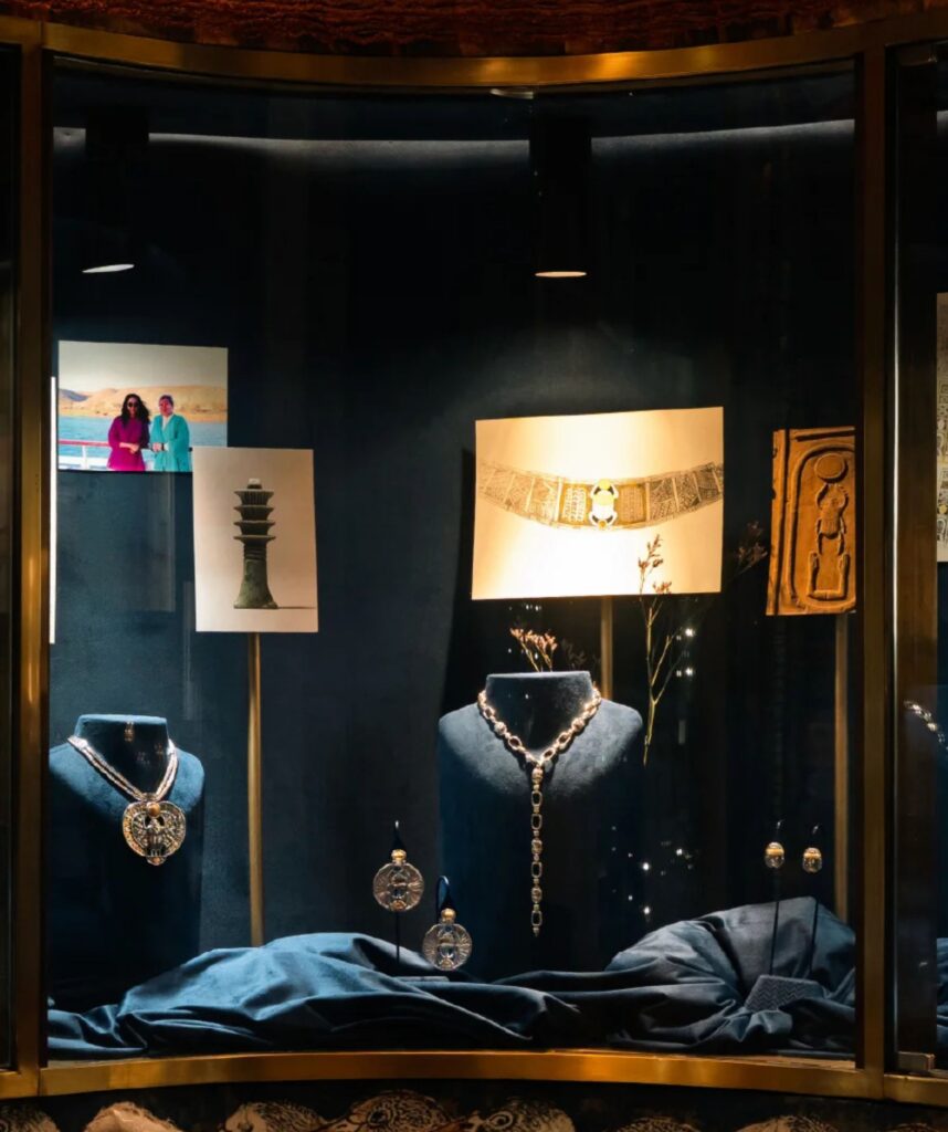 In celebration of the Grand Egyptian Museum’s historic inauguration, Azza Fahmy Jewellery unveils an Ancient Egyptian Retrospective inside its GEM boutique. The space becomes an immersive journey through the brand’s deep-rooted connection to Egypt’s cultural legacy, featuring archival and contemporary collections alongside a preview of the upcoming Scarab Collection. Paired with vibrant Bokja tapestries, the showcase reflects Fahmy’s signature blend of craftsmanship and storytelling, bringing ancient symbolism into a modern creative dialogue.