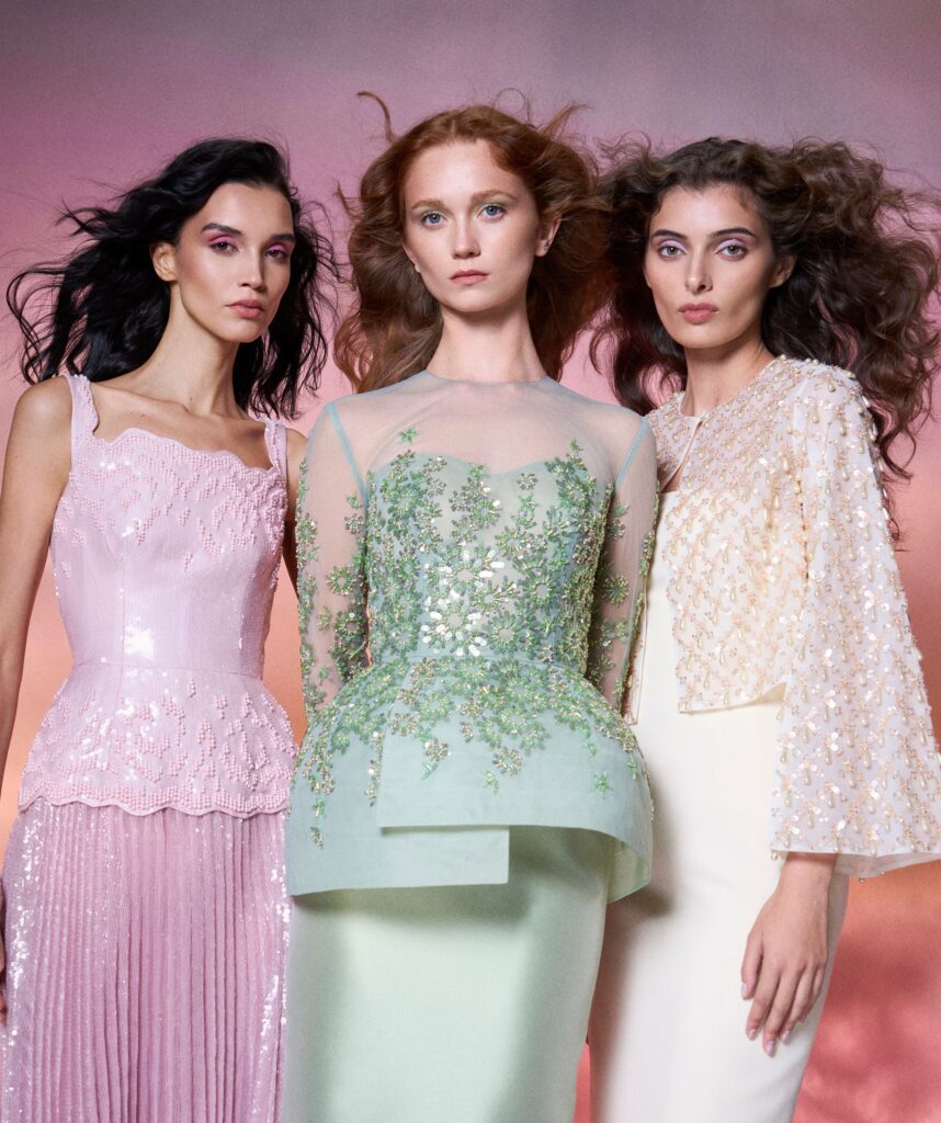 Rami Al Ali’s Spring/Summer 2026 ready-to-wear collection, ‘Dreams of Giverny,’ takes its cues from Monet’s legendary gardens, translating water lilies and wild blooms into sculptural fashion. The designer plays with tension between structure and fluidity, which translates to tubular column dresses, petal-trimmed gowns, and cropped jackets shaped like budding florals, and more. Fabrics move from embossed jacquard silks to whisper-thin chiffons, while a palette of butteryellow, sage green, misty lavender, and pale rose recalls morning light over blooming fields. It’s a collection that feels rooted in Impressionism yet designed with modern wearability in mind.