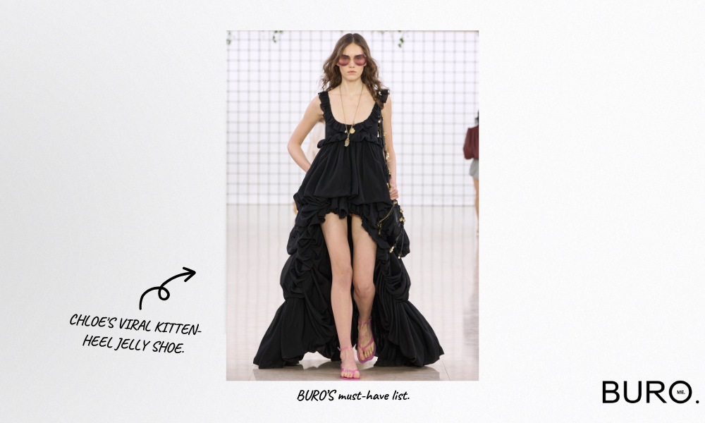 This week, the Buro Must-Have list shines the spotlight on Chloe’s Jelly sandals because Chemena Kamali made jelly shoes chic—and we’re all sliding into them. As part of her SS25 collection for Chloé, she sent a wave of jelly styles strutting down the runway, styled with boho florals, puffed-up bloomers, and breezy harem pants. And let’s be honest—when Chloé talks, the fashion crowd listens. These jellies are already the it shoes to snap up this spring.