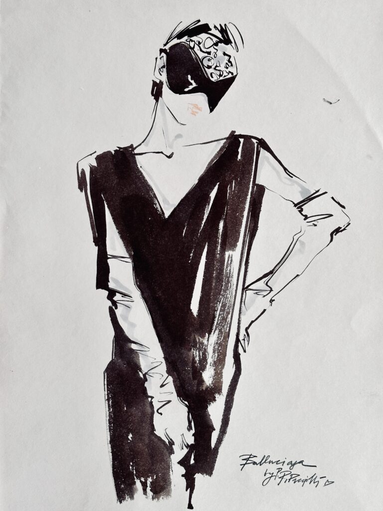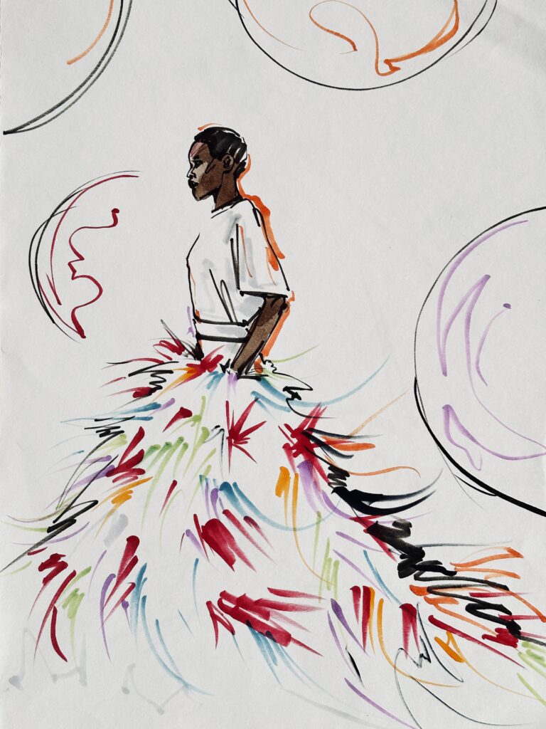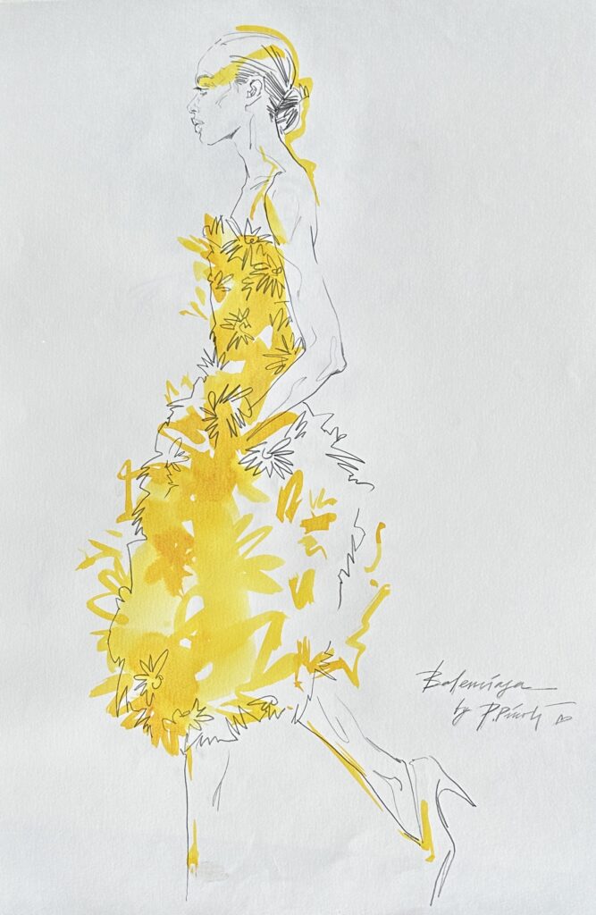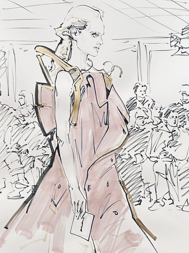 Lavdovskaya’s pen has become a kind of interpreter between fabric and emotion. Her new series of sketches inspired by the Spring/Summer 2026 shows serves both as art and commentary. Each drawing feels like a visual shorthand for the mood of the collection depicted.
