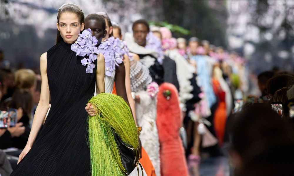 There were clear parallels with Galliano’s Dior beyond the floral language. Both designers understand silhouette as storytelling. Anderson’s softened references to the ‘Bar’ jacket, his manipulation of volume, and his attention to surface treatment all signaled a deep reading of the house’s codes. His couture does not reenact emotion; it contains it.
