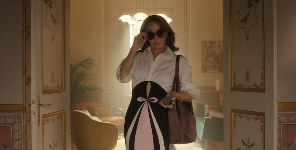 The move from Paris to Rome, and eventually Venice, is not simply a change of backdrop. It reshapes how clothes are used to signal ambition, authority, and emotional trajectory. The outfits remain abundant and often extravagant, but there is a clearer sense of hierarchy. Not every look is designed to compete for attention. Some are meant to hold it quietly.