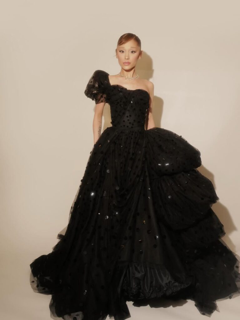 Her most powerful turn, though, came in London. Grande wore an archival Gilbert Adrian gown from 1952. The one-shoulder black princess dress carried the kind of old Hollywood glamour that does not require explanation.