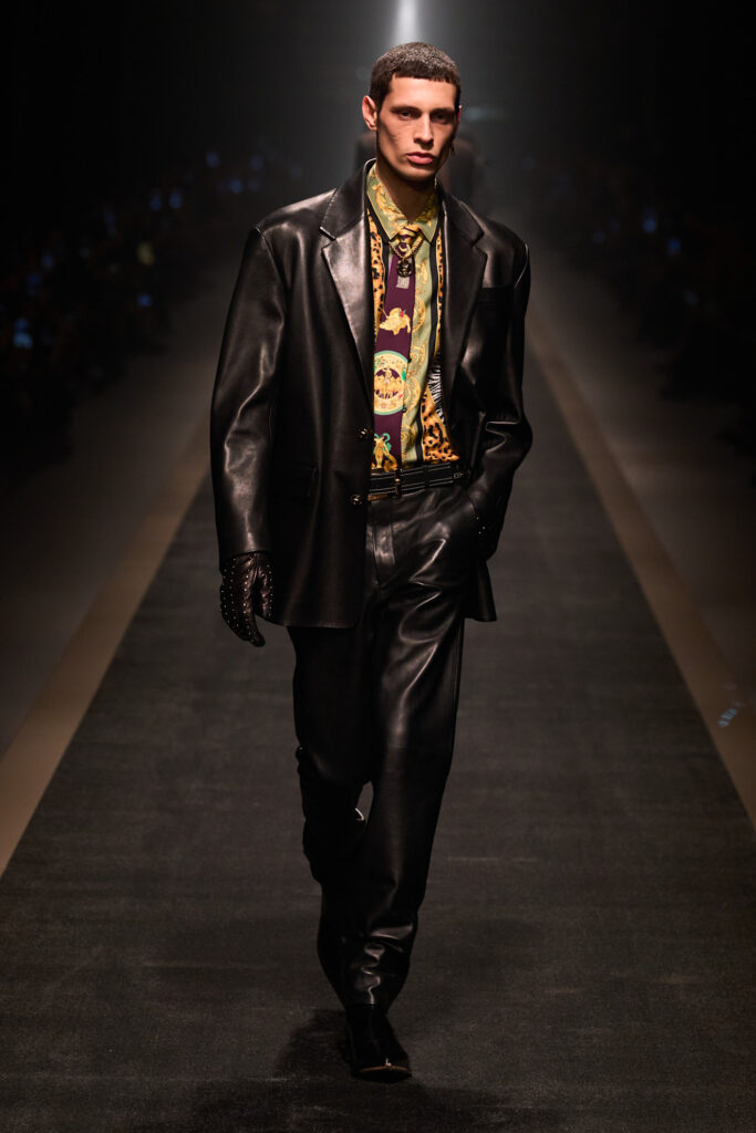 Even Versace’s Fall/Winter 2025 collection showcased how daring contrasts can speak louder than opulence. Leopard prints clashed with sharp tailoring, printed shirts met leather trousers, and studded accessories punctuated every look like exclamation points. Here, styling was confidence in motion — playful, fearless, and utterly modern.