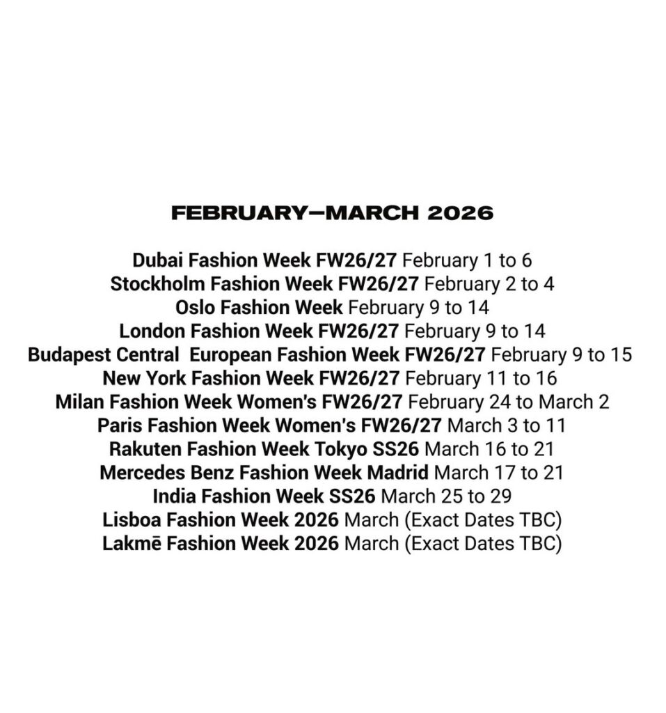 As 2025 comes to a close, here’s your complete guide to the major global fashion week dates for 2026, from Paris and Milan to Dubai, New York, Tokyo, and beyond.