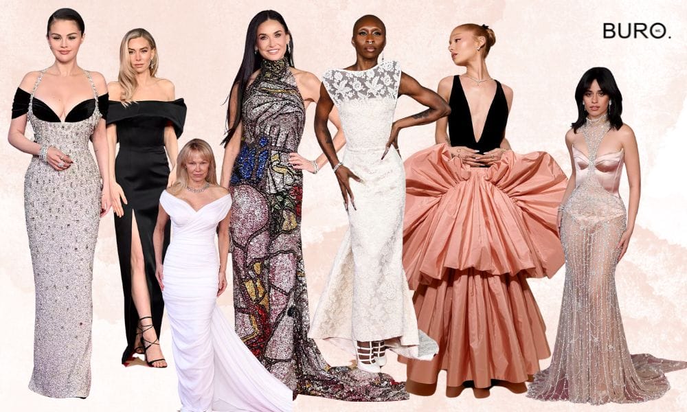 With a star-studded guest list that included Demi Moore, Pamela Anderson, Camila Cabello, Timothée Chalamet, and Cynthia Erivo, among others, the night promised major fashion moments. Pop icons-turned-actresses Selena Gomez andAriana Grande brought their red-carpet A-game, with Gomez flaunting a daring Schiaparelli gown while Grande played with volume in a Louis Vuitton ensemble. Demi Moore walked the red carpet in a jaw-dropping Alexander McQueen gown with intricate crystal embroidery emulating stained glass.