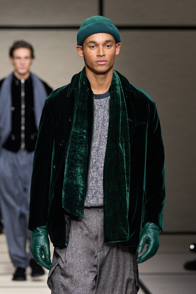 Once the uniform of emperors and dandies, velvet is staging a quiet revolution on the menswear runways. For Fall/Winter 2025, brands from Emporio Armani to Hermès, Dolce & Gabbana, and Giorgio Armani reached for the plush fabric with renewed interest, translating it into blazers, jackets, trousers, shorts, and even hats.