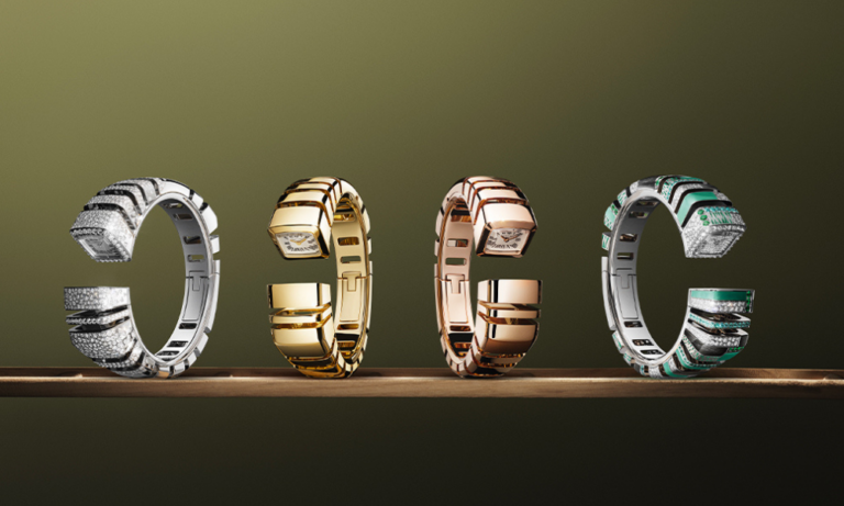 - Marking a first for Breitling, the skeletonized dial of this bold model exudes a supercharged presence with ceramic inserts, an “onion” crown, and the unique Rouleaux bracelet.