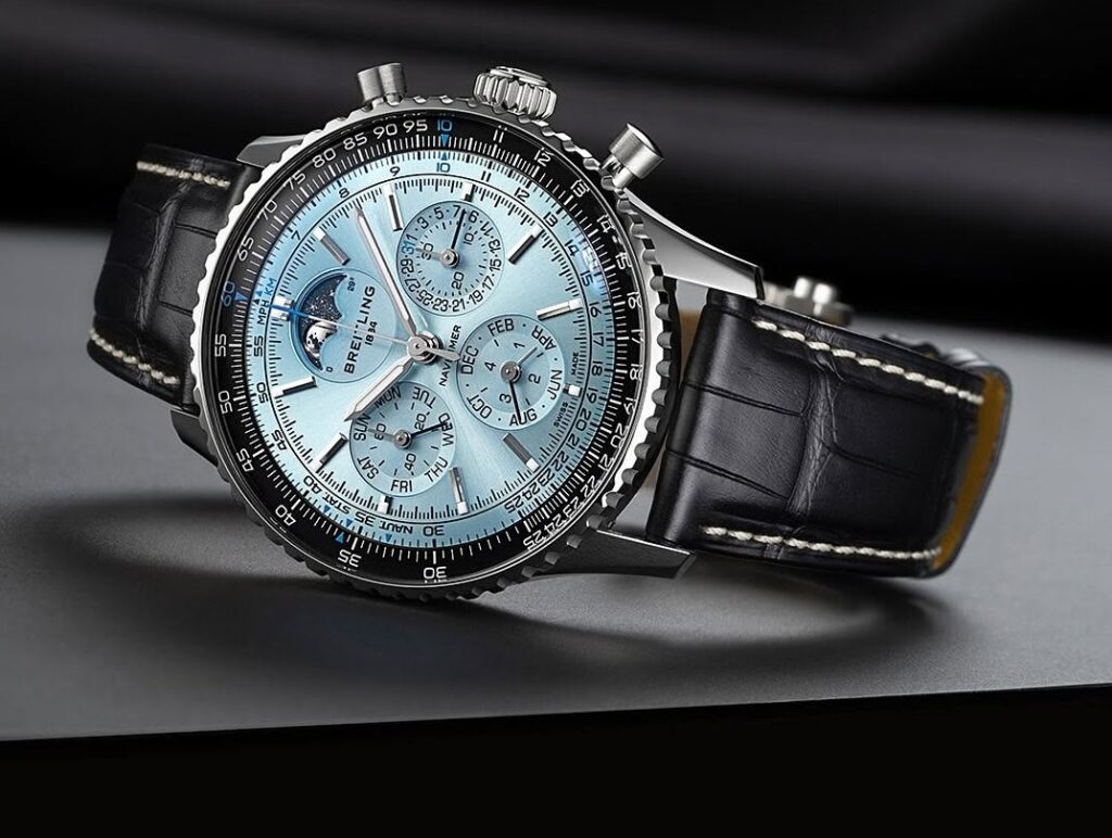 Breitling has introduced the latest iteration of its iconic Navitimer, featuring a striking ice-blue dial, platinum bezel, and stainless-steel case. The Navitimer B19 is powered by the brand’s groundbreaking Caliber B19, a perpetual calendar chronograph movement that only recently debuted as part of the brand’s 140th anniversary celebration.