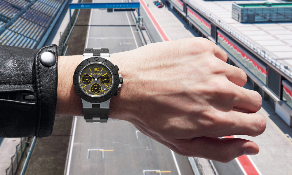 Available in two limited editions – one with a striking yellow dial and black counters, and the other with an anthracite dial complemented by yellow indices – this timepiece is a collector’s dream. Plus, for the first time since its relaunch in 2020, the Bulgari Aluminium boasts an integrated tachymetric scale, perfect for tracking thrilling races. Powered by the automatic Calibre B381 with a chronograph function, meticulously crafted by Bulgari’s integrated Manufacture, this watch is not just a timekeeper; it’s a statement of speed, style, and sophistication.