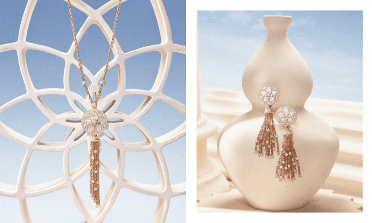 Representing the iconic Sheikh Zayed Grand Mosque in Abu Dhabi, the mother-of-pearl dial was hand-painted by a miniature artist and features thirty baguette-cut diamonds surrounding the dial. Adorned in a case that is made from 18-carat gold, the timepiece is as exquisite as it is exclusive and perfectly blends the past with the present.