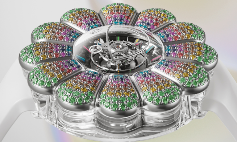In a special tribute to Victoire de Castellane’s passion for color, the collection features a stunning bracelet adorned with a beautiful gradient of sapphires and spessartite garnets. This piece combines natural beauty and exquisite craftsmanship, making it a true work of art.