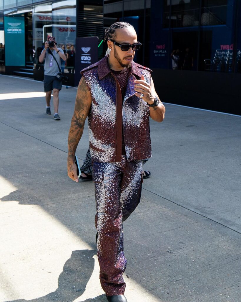 Instead of retreating, Hamilton pushed back. Clothing became his way of reclaiming agency in a space that was not built with difference in mind. His looks were never about shock for the sake of attention. They were deliberate, thoughtful, and increasingly confident. Over time, the paddock shifted. What was once seen as a distraction became an influence.