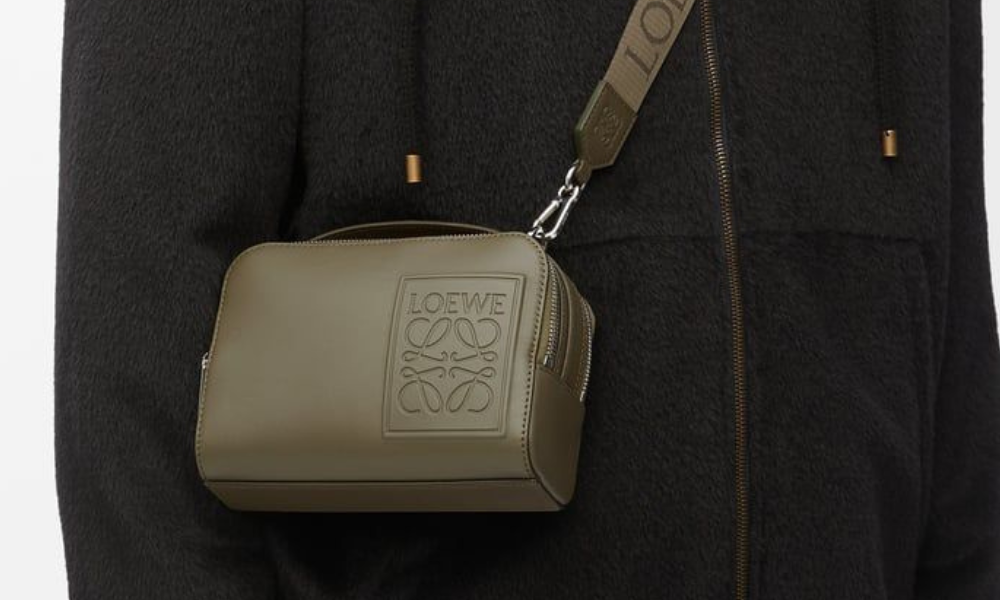 Loewe Men’s Mini Camera Bag is a compact yet stylish option crafted in soft-grain leather with the brand’s subtle Anagram embossing. Perfect for men who prefer to travel light while keeping essentials—like phone, wallet, and keys—neatly organized.