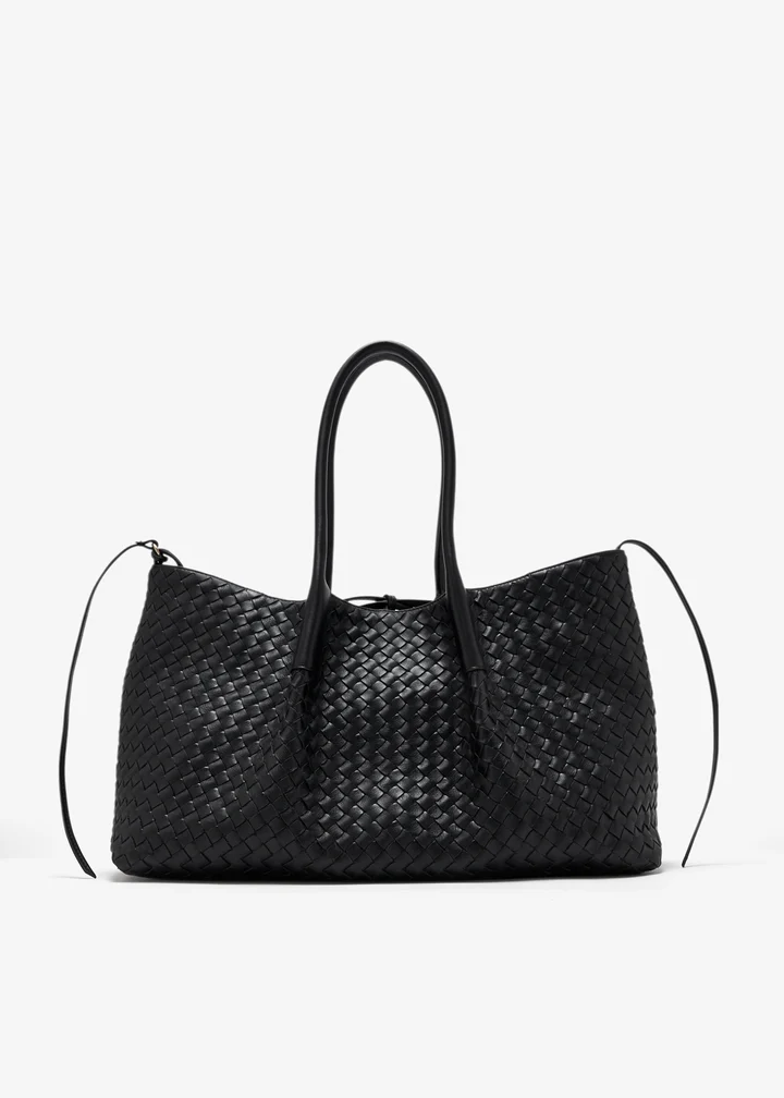Saturday turns up the personality. A graphic sweater, wide-leg trousers, and a Bottega Veneta capture an effortless weekend mood. It’s comfortable, expressive, and perfectly balanced between ease and intention.