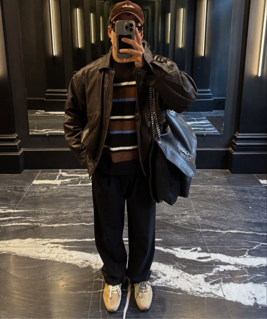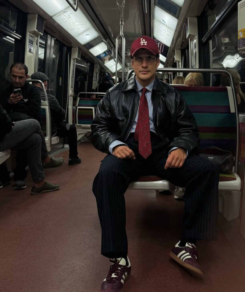 Sunday ends the week on a strong note. A leather jacket meets pinstripe trousers, sneakers, and a baseball cap, bringing together old-school tailoring and contemporary ease. It is quietly confident and distinctly personal, a fitting close to a well-dressed week.