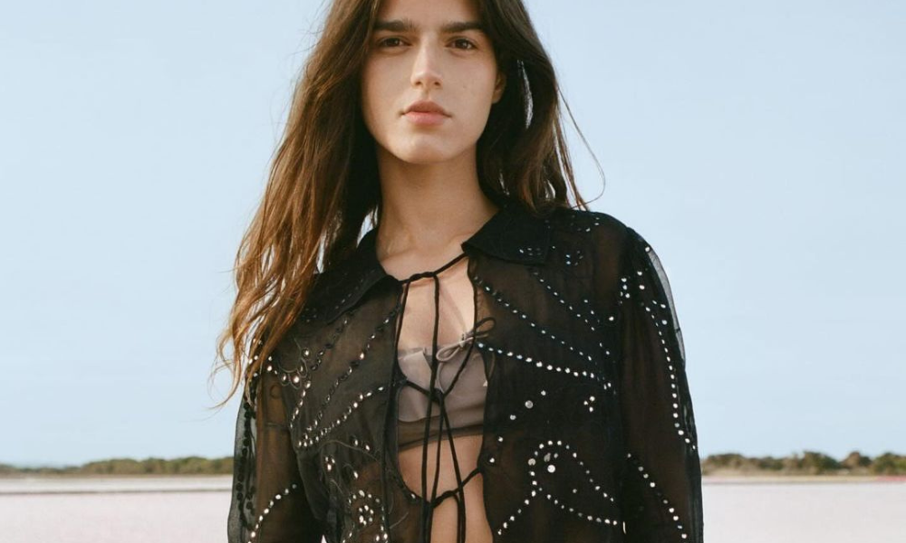 With Gayot on one screen and a mood board alive with summer vibes, and Zadeh on another, rooftop-bikini-clad in NYC (or perhaps Paris or Greece), the collection exudes wanderlust. Inspired by Zadeh’s peripatetic lifestyle, each piece carries a hint of escapism and the allure of adventure. From bias-cut slip dresses that glide like silk to metallic knit bikinis that fit like second skin, the collaboration speaks to ethereal elegance and enduring style.