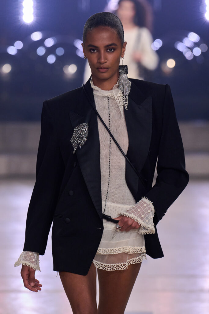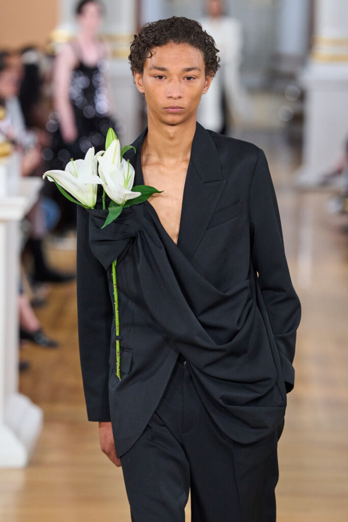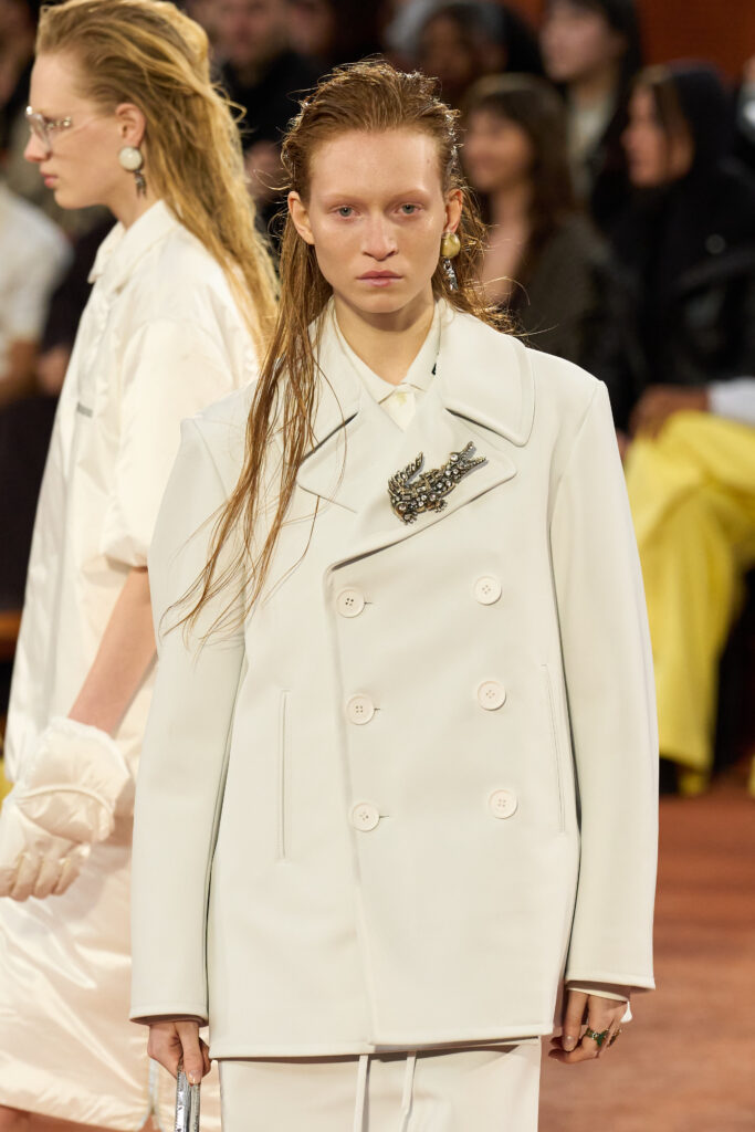 So the piece was never irrelevant. It was simply formal. Which is why seeing it splashed across the runway felt exciting.